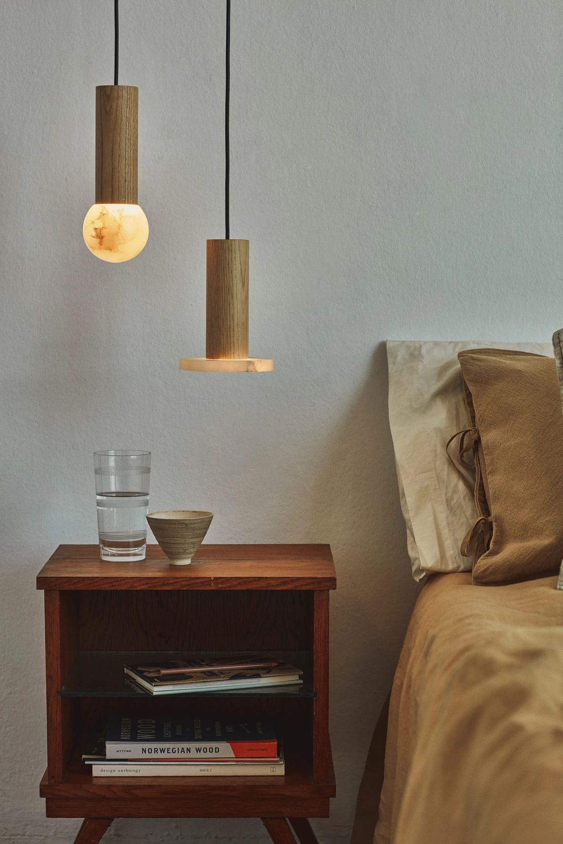 The pendant version as the ultimate expression of the two geometries and the two materialities. Ideal for lamp combinations of two or more.
